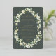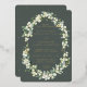 Fresas de nieve pintadas a mano y tallos de eucalipto dispuestos en un hermoso marco botánico sobre un fondo verde oscuro. El texto y los puntos dispersos en la parte delantera de la tarjeta son pulsados por Relieve metalizado. Todo el texto es completamente editable. Vea esta colección en mi tienda para invitaciones con opciones de texto alternativas, colores diferentes y para elementos de coordinación.