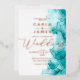 Moderna acuarela color turquesa azul elegante invitación a la boda con acuarela pintada a mano en turquesa, Wispy Fluid Watercolor Invitación a la boda - Flor salpicadura de tinta de alcohol en tonos verde azulados del océano - resaltado