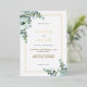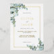 Invitación Con Relieve Metalizado Elegante Boda de Oro Eucalyptus