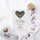 El corazón del Relieve metalizado dorado y el guión de la invitación en la parte delantera de esta romántica y moderna invitación a la boda es formal e informal. El corazón de la filigree tiene un ambiente vintage de arte folclórico valentina, mientras que el verdadero Relieve metalizado dorado le da elegancia y romance a este lugar de boda personalizado. Usar la parte posterior para una foto de pareja con o sin un filtro. Una hermosa elección para un boda temático de San Valentín.