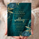 Invitación Con Relieve Metalizado Elegante Boda Floral Azul Turquesa y Dorado