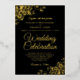 Invitación Con Relieve Metalizado Elegante Boda negro con flores doradas