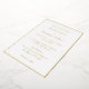 Tarjeta de invitación de boda personalizada, simple, blanca y dorada falsa, con tipografía elegante y moderna de realce en lámina metálica. Simplemente ingrese los nombres de la novia y el novio, y los detalles de la fecha y hora de la boda. Mientras personaliza, podrá ver una vista previa durante todo el proceso. Una invitación de boda elegante para sus amigos y familiares.