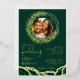 Crea invitaciones nupciales únicas con un diseño de color verde esmeralda y oro con foto y texto personalizado. Estas invitaciones están decoradas con elegantes flores de eucalipto esmeralda y follaje y un estilo agate. Las plantillas facilitan la personalización y el personalizar. Por favor, utilice la plantilla para cargar la foto para ponerla en forma redonda. El cuadro cuadrado funciona mejor.