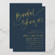 Invitación Con Relieve Metalizado Elegante Bridal Shower Blue & Gold Caligrafía