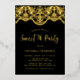 Invitación Con Relieve Metalizado Elegante Brocade Lace Black Sweet 16 Fiesta