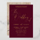 Invitación Con Relieve Metalizado Elegante caligrafía de oro Boda de Borgoña