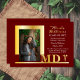 Invitación Con Relieve Metalizado Elegante Dr MD Caduceo Foto Graduado Granate