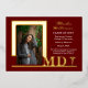 Invitación Con Relieve Metalizado Elegante Dr MD Caduceus Photo Graduate Maroon