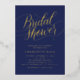 Invitación Con Relieve Metalizado Elegante ducha de novia dorada azul
