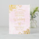 Esta hermosa invitación a la boda incluye la impresión de Relieve metalizado prensado en oro en un fondo rosa pálido y deslumbrado. El bonito diseño tiene caligrafía de escritura de encaje con filigree floral en las esquinas. Elegante, elegante, sofisticado y moda, esta invitación es elegante y de buen gusto. La elección perfecta para elegancia, estilo y clase.