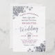 Esta hermosa invitación a la boda incluye la impresión de cassis morada, magenta o berry y la impresión de plata de Relieve metalizado real sobre un fondo blanco clásico. El bonito diseño tiene caligrafía de escritura de encaje con filigree floral en las esquinas. Elegante, elegante, sofisticado y moda, esta invitación es elegante y de buen gusto. La elección perfecta para elegancia, estilo y clase.