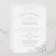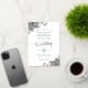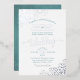 Esta hermosa invitación a la boda incluye impresiones verde azuladas y reales de plata de Relieve metalizado en un fondo blanco clásico. El bonito diseño tiene caligrafía de escritura de encaje con filigree floral en las esquinas. Elegante, elegante, sofisticado y moda, esta invitación es elegante y de buen gusto. La elección perfecta para elegancia, estilo y clase.