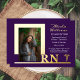 Invitación Con Relieve Metalizado Elegante enfermera RN Caduceus Photo Graduate Purp