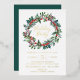 Invitación Con Relieve Metalizado Elegante fiesta de feriado Holly Berry Wreath