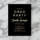 Invitación Con Relieve Metalizado Elegante fiesta de graduación de caligrafía negra