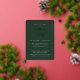 Una elegante y moderna Invitación de la fiesta de Halloween que presenta escritura manuscrita con presión de Relieve metalizado y estrellas dispersas en un fondo verde oscuro. Todo el texto - aparte del guión 'Halloween Party' - es totalmente editable, por lo que puede añadir o borrar texto fácilmente y cambiar el estilo/tamaño/diseño de la fuente para que se ajuste a sus necesidades. Este diseño está disponible en otros colores, en una versión no-Relieve metalizado y también en accesorios de coordinación (no-Relieve metalizado).