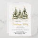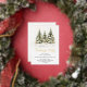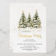 Invite a sus invitados de fiesta de vacaciones con estilo, ya sean familiares, amigos o compañeros de trabajo - este diseño funciona para eventos casuales o corporativos! El diseño cuenta con un ilustracion acuático de tres pinos decorados con estrellas doradas. Los detalles de su evento aparecen a continuación con "Fiesta de Navidades" en letras de oro de moda.