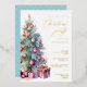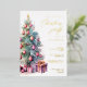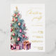 ¡Las vacaciones están a la vuelta de la esquina! Es casi el momento de organizar e invitar a tu familia y amigos a celebrar las fiestas con esta invitación de fiesta de Navidades en Relieve metalizado de oro real. La invitación incluye un impresionante y vibrante árbol de vacaciones de Navidades acuáticos adornado con decoraciones y regalos junto con una elegante caligrafía de la frase "fiesta Navidades". Por favor, tenga en cuenta que el Relieve metalizado dorado sólo aparece en la parte delantera. Las obras de arte gráficas del árbol de Navidad en el frente no se pueden frustrar. Nota adicional: La frase "Por favor únase a nosotros para un" y la elegante frase del guión caligráfico "Navidades Fiesta", así como el árbol navideño acuarela con dibujos gráficos y sus elementos junto con las líneas y otros elementos, no pueden cambiarse, eliminarse ni moverse. Están arreglados.