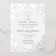 Invitación Con Relieve Metalizado Elegante floral primera comunión plateada