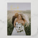 Simple boda gracias tarjetas con "Gracias" en un elegante guión escrito a mano en la parte superior izquierda y sus nombres en la parte inferior derecha, sobre su foto favorita. Todo el texto del frente está en Relieve metalizado oro real. El reverso tiene tu mensaje personal en negro sobre un fondo blanco. La letra a mano de moda añade un toque romántico a este diseño minimalista.