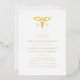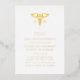 Invitación moderna, elegante y sofisticada de oro y blanco para la fiesta de graduación de la escuela de enfermería con un caduceo. Contácteme para obtener ayuda con sus personalizaciones o para solicitar productos adicionales que coincidan o coordinen con su celebración.