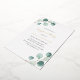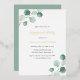 Elegante invitación a la fiesta de compromiso con un diseño sencillo, con una vegetación de eucaliptos pintados en la esquina superior izquierda y en la esquina inferior derecha, junto con la "fiesta de compromiso" y sus nombres en un verdadero Relieve metalizado de oro. El reverso es un color verde salado medio a juego. Esta rústica invitación botánica a la fiesta de compromiso con un toque moderno es perfecta para una celebración de primavera o verano.