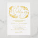 Una verdadera invitación a la boda de Relieve metalizado dorado con una delicada garanda floral rústica a mano de follaje de hojas botánicas con una tipografía de escritura elegante. Personaliza tu información especial sobre el día de tu boda. Diseñado por Thisisnotme©