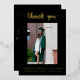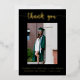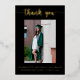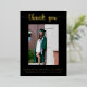 Diga gracias a todos sus invitados de graduación con esta elegante tarjeta de agradecimiento de graduación de Relieve metalizado de oro. Esta tarjeta presenta un fondo negro con texto de Relieve metalizado dorado. El texto de la parte delantera y trasera se puede personalizar para crear su propio mensaje personal.