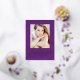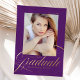 Celebra el logro de tu graduado de secundaria o universitario con esta elegante invitación de graduación fotográfica, con un rico fondo morado y "Graduado" en brillantes caligrafías modernas de Relieve metalizado dorado. Personalizar con su foto, nombre, colegio y año de graduación para un toque personal. En la parte trasera se exhibe un sofisticado patrón de enrejado morado y blanco, que añade un toque atemporal. Perfecto para compartir este hito especial con la familia y los amigos, esta invitación de graduación personalizado combina la elegancia moderna con un diseño clásico.