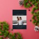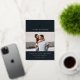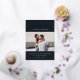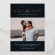 Una elegante tarjeta de guardar fecha de boda con una foto de paisaje, caligrafía de letra a mano con lámina de oro rosa y texto editable simple y chic en la parte delantera. La parte trasera tiene una foto de retrato que es extraíble. Haga clic en el botón de edición para personalizar este diseño.