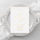 Da una impresión atemporal con esta elegante invitación a la boda, con un brillante texto de Relieve metalizado dorado sobre un fondo blanco y nítido. Con líneas depuradas y tipografía minimalista, es la elección perfecta para temas bodas modernos, románticos o clásicos. Una adición refinada y sofisticada a su suite de papel boda.