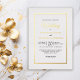 Esta elegante invitación a la boda incluye los nombres y el borde en Relieve metalizado dorado sobre un fondo blanco. El diseño combina un guión elegante y texto serif.