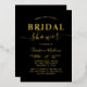 Invitación elegante para lluvia de boda con caligrafía en oro sobre fondo negro. Plantilla simple y elegante para que la edites según tus detalles. Edítala aún más con la herramienta de diseño para cambiar colores, agregar tu propio fondo y reorganizar el texto.
