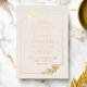 Este diseño simple y elegante presenta texto de lámina de oro real sobre un fondo rosa suave, enmarcado por un rectángulo de lámina de oro decorado con siluetas de ramas de olivo en dos esquinas. La parte posterior de la tarjeta es de color rosa suave sólido.