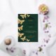 Invitación Con Relieve Metalizado Elegante mariposa de oro esmeralda Quinceanera