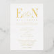 Hermosa Elegante Invitación a la Boda de Relieve metalizado dorado Blanco Monograma. Cuenta con hermosas iniciales de personalizable con ampersand. Relieve metalizado dorado de texto sobre fondo blanco. Personalice con sus iniciales de Monograma y texto boda. Las opciones de Relieve metalizado incluyen oro, plata y oro rosa. El fondo puede ser cualquier color que elija. Le invitamos a visitar nuestra tienda Zazzle, GJ Design Co, para ver productos a juego y más.