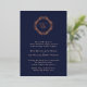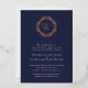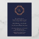 Elegante Relieve metalizado Monograma Clásico Boda de la Marina. Hermosas invitaciones matrimoniales con texto de Relieve metalizado en azul marino adornado con un adorable monograma de una sola letra en un marco decorativo de Relieve metalizado circular. También hay disponibles opciones de Relieve metalizado de oro, plata y Relieve metalizado de oro en rosa real. Personalice los datos de su boda. Le invitamos a visitar nuestra tienda, Austen & Grace, para ver los productos correspondientes y más. Póngase en contacto con nosotros si necesita ayuda.