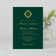 Invitación Con Relieve Metalizado Elegante Monograma Clásico Luxe Esmeralda Verde Or