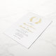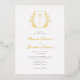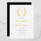 Una elegante invitación a la boda incluye un escudo de arte floral de la línea de Relieve metalizado botánico con su monograma en Relieve metalizado dorado. Personalice con todos los detalles importantes, como sus nombres, fecha de boda, hora y ubicación del lugar. El lado inverso está coordinado en negro