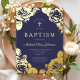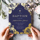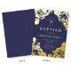 Invitación Con Relieve Metalizado Elegante Navy Blue Floral Boy Baptism Gold