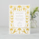Invite a sus huéspedes con un estilo incomparable con esta exquisita invitación a la boda, con un impresionante marco de Relieve metalizado dorado que irradia elegancia eterna. El diseño, muy complejo, se inspira en la lujosa época Art Déco, con su precisión geométrica y sus motivos botánicos estilizados, al tiempo que recuerda las formas orgánicas que fluyen a menudo en el Art Nouveau. El lujoso Relieve metalizado de oro crea un efecto de relieve cautivador, con sus elegantes frondas de palmeras, sus elementos florales abstractos (como palmetas estilizadas o antemiones) y sus patrones simétricos que exudan sofisticación. El panel central, situado sobre un fondo blanco prístino, muestra con elegancia los detalles de su boda en tipografía clásica. Esta invitación es perfecta para las parejas que buscan una estética glamurosa, sofisticada y atemporal para su día especial.