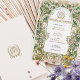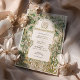 Invite a sus invitados a celebrar su día especial con esta exquisita invitación a la boda Art Nouveau. Con un intrincado diseño floral con elegantes acentos de Relieve metalizado dorado, esta invitación se inspira en la belleza intemporal del arte Art Nouveau. La parte delantera de la tarjeta muestra ilustraciones botánicos detallados en tonos verdes, marfil y oro, creando un aspecto armonioso y sofisticado. La parte posterior sigue la temática con un refinado monograma y motivos florales, lo que la convierte en una perfecta mezcla de elegancia clásica y lujo moderno. Ideal para una boda romántica y elegante, esta invitación marca el tono para una celebración inolvidable.