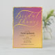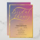 Elegante invitación a la ducha de novias con un Relieve metalizado de oro real, un tipo de letra de guión moderno y un impresionante fondo de gradiente morado-dorado. Perfecto para glamorosos, lujosos o formales duchas nupales. Personalice fácilmente con sus detalles del evento y haga una impresión duradera.