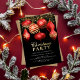 Esta elegante invitación para fiestas navideñas incluye hermosos adornos navideños en rojo y oro con luces de cuerda dorada sobre un fondo negro. El texto se puede cambiar fácilmente haciendo clic en "Personalizar". Perfecto para las fiestas familiares o de negocios.