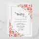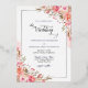 Esta elegante invitación a la boda incluye ramos de flores acuáticas en tonos melocotón y rosa. El texto del Relieve metalizado plateado para sus detalles está rodeado por un marco plateado. Fácil de personalizar haciendo clic en "Personalizar".