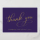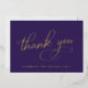 Elegante tarjeta de agradecimiento púrpura de 70 años que incluye "Gracias" en un guión de caligrafía de moda representado en su elección de Relieve metalizado oro, plata o oro rosa genuino. Al dorso, personaliza tu mensaje de agradecimiento y agrega tu nombre en un script tipo firma