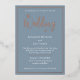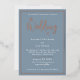 Invitación Con Relieve Metalizado Elegante Rosa Dorado Hoja en Azul Polvoriento Boda
