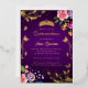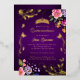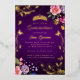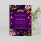 Invitación Con Relieve Metalizado Elegante Rosa Púrpura con Remolino Dorado Quinceañ