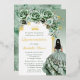Invitación Con Relieve Metalizado Elegante Rosa verde sabio Floral Quinceañera Fiest
